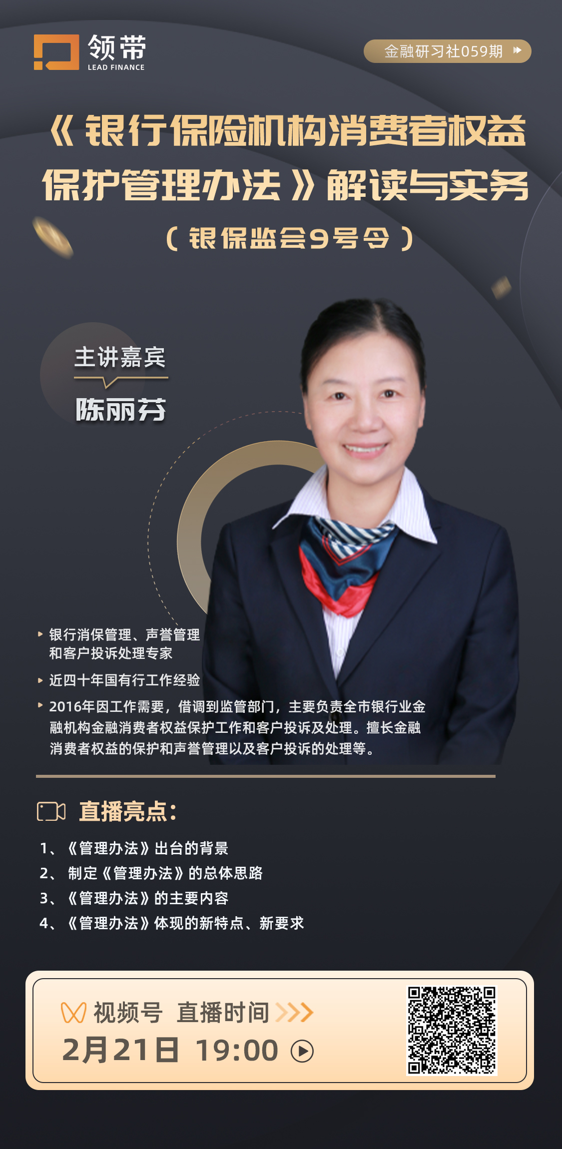 金融研习社 | 《银行保险机构消费者权益保护管理办法 》解读与实务(银保监会9号令)